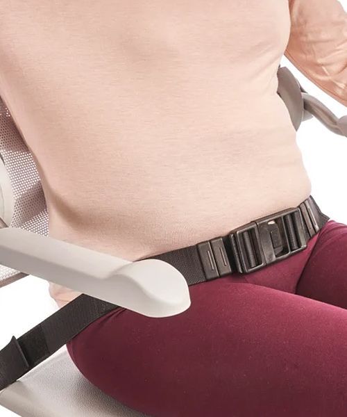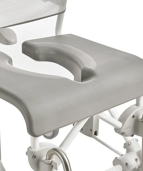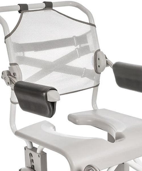 Alto is purposefully designed for home care environments, offering a compact footprint that is ideal for smaller spaces. It includes a version with an upright back and upright head support, a unique combination that allows the chair to be placed closer to the wall, and ensures a seamless fit over wall-mounted toilets and many smart toilets.