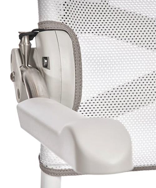 The wipeable back support is designed to support the spine´s natural curve, promoting good posture and comfort. It is slightly flexible in the lower part to adapt to users' different shapes. It is easy to assemble and requires no tools. Additionally, the wipeable back support's height can easily be adjusted by sliding the support either up or down the chassis.