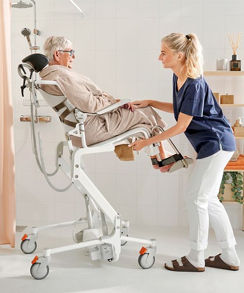 Alto is a chair with powered, adjustable height and tilt function. It offers exceptional maneuverability and ergonomic 360-degree access, reducing the risk of injury for caregivers.