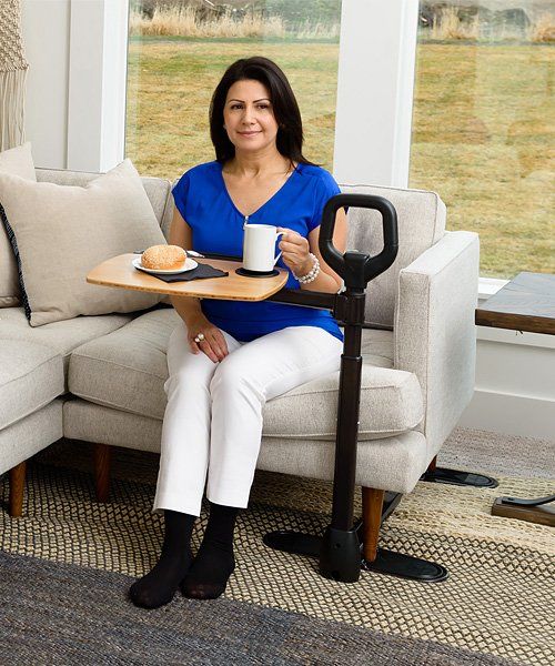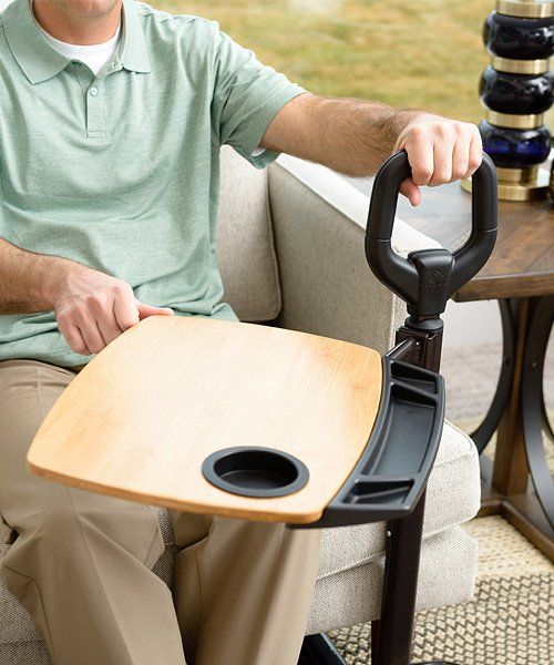 - SUPPORT HANDLE: The Assist-A-Tray boasts a standing handle that can be used with both hands and provides balance and support for up to 250 lbs when sitting or standing.