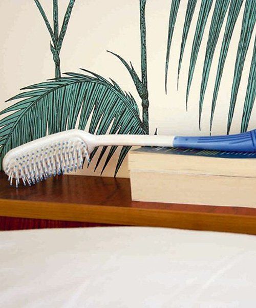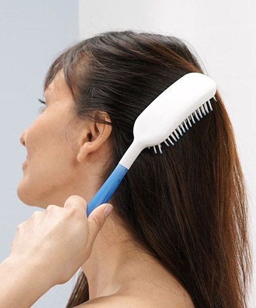 The handle is oval and has a non-slip surface which provides a secure grip. The Beauty hairbrush is available in two lengths. The shorter version is recommended when the user can reach up to the ear. The longer version is suitable for users who can only reach to their shoulder.