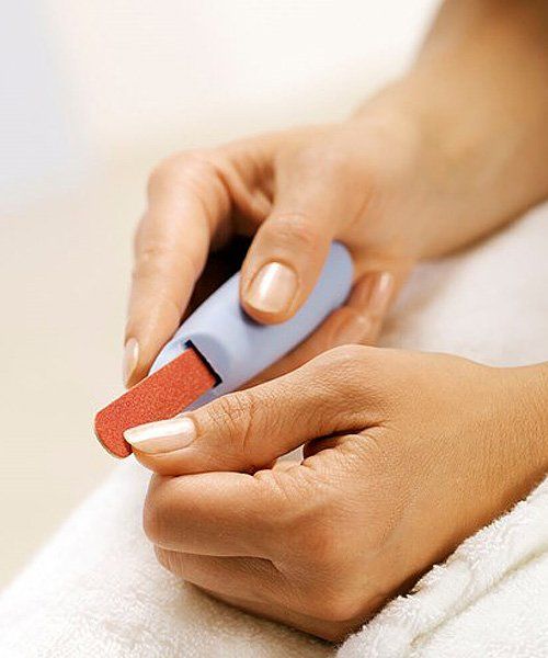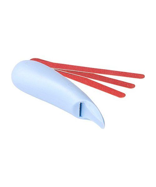 The handle is designed to rest comfortably in the whole hand. You can put a nail file in the grip and the pedicure is achieved with ease. The wider end of the grip may be used for mascara, a tooth brush or e.g. a razor.
