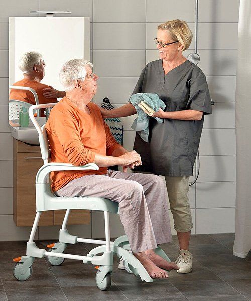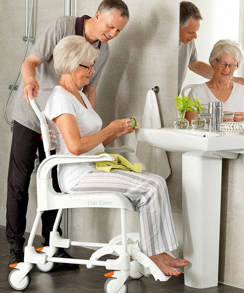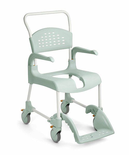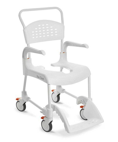 Etac Clean shower commode chair is extremely easy to operate, thanks to the width of the push handle. The clever design can be seen throughout the entire chair. The upright handle ensures that Clean is a perfect fit, even over wall-mounted toilets, and the chair is open at the back to facilitate access.