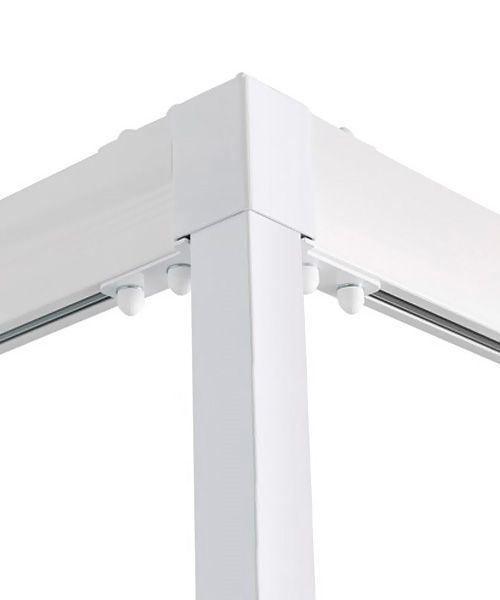 Molift Quattro can be delivered in two sizes: 118 x 118 inches and 158 x 158 inches. The length of the posts are fixed and the max height is 96 inches. Molift Air or Molift Nomad with trolleys are ordered separately.