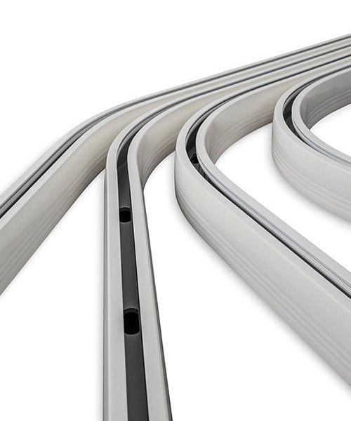 - Curved rails 30°, 45°, 60° and 90°