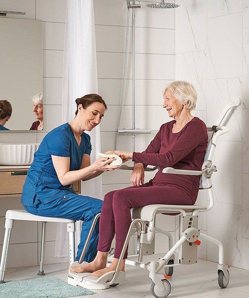 With excellent access around the seat area, personal care routines are made easier for the carer and can be performed with dignity for the user. For sensitive users, extra-soft, seat cushions are available. The soft and quick-drying backrest and curved footrests of the Swift Mobil-2, add to user comfort.