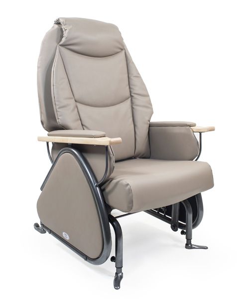 Equipped with a mechanism built into the backrest, the Thera-Glide® Wood locks automatically at the first sign of the user’s intent on getting up and allows rocking when fully seated.